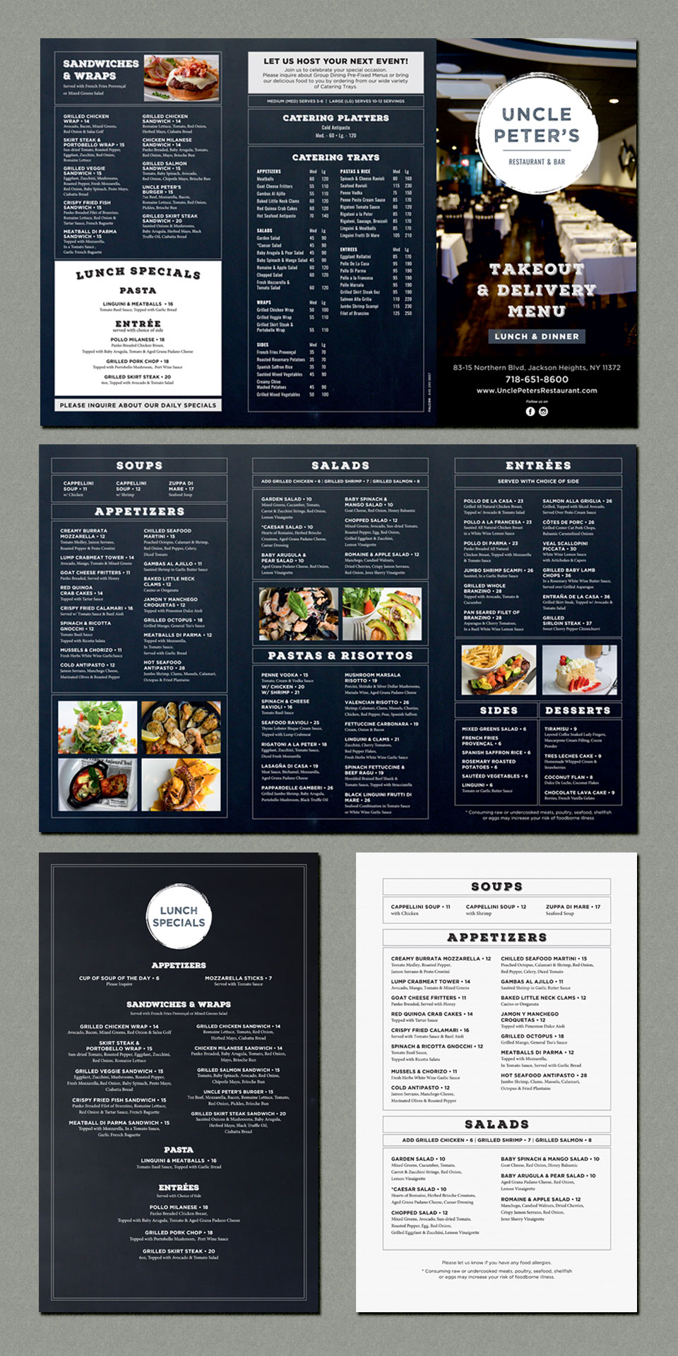 Falcon specializes in providing design and printing services for Restaurants, Bars and Caterers. We have served over 100 restaurants across New York. From the initial logo design to production of printed materials like Menus, Presentation Folders, Flyers, Signs, Displays, Table Tents, Hang Tags and Gift Cards, anything you require can be designed, printed and delivered to your doorstep.